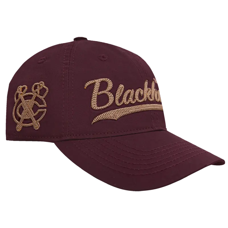 NHL CHICAGO BLACKHAWKS TAIL SWEEP STRAPBACK HAT (WINE)