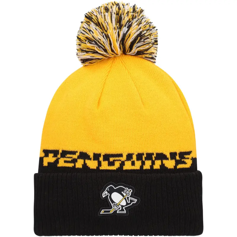 Men’s adidas Yellow/Black Pittsburgh Penguins COLD.RDY Cuffed Knit Hat with Pom