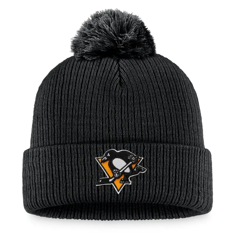Men’s Fanatics Black Pittsburgh Penguins Core Primary Logo Cuffed Knit Hat with Pom