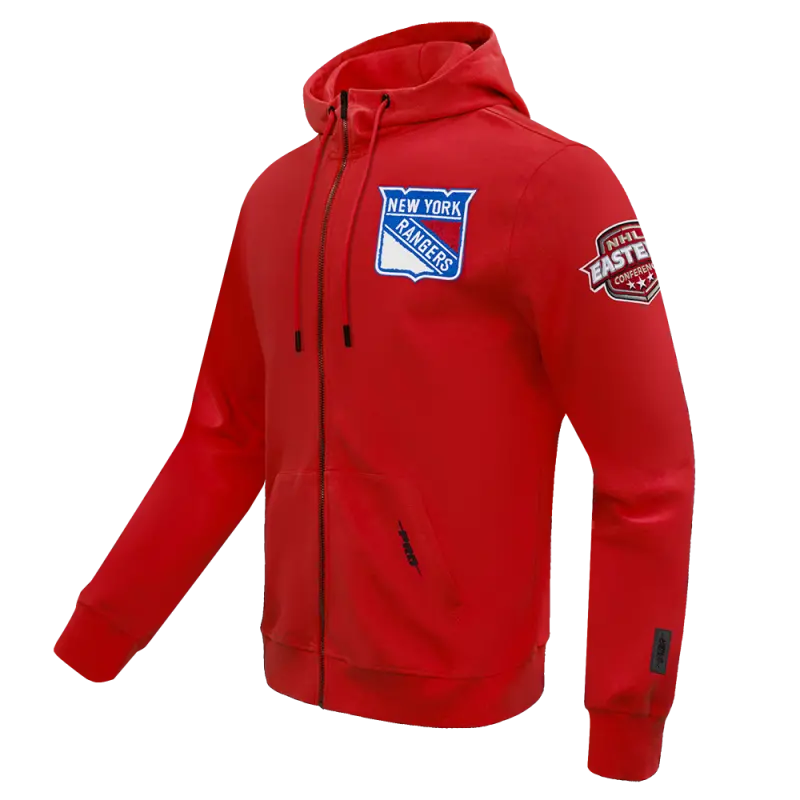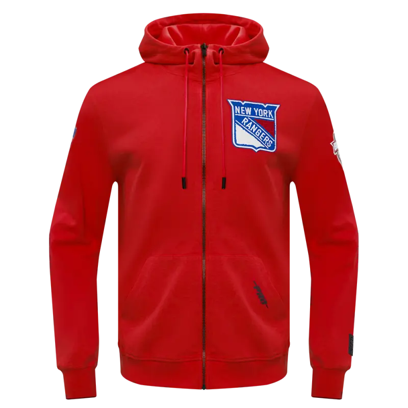 NHL NEW YORK RANGERS CLASSIC CHENILLE MEN’S DK FULL ZIP PULLOVER HOODIE (RED)