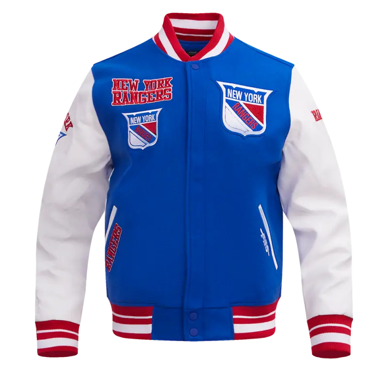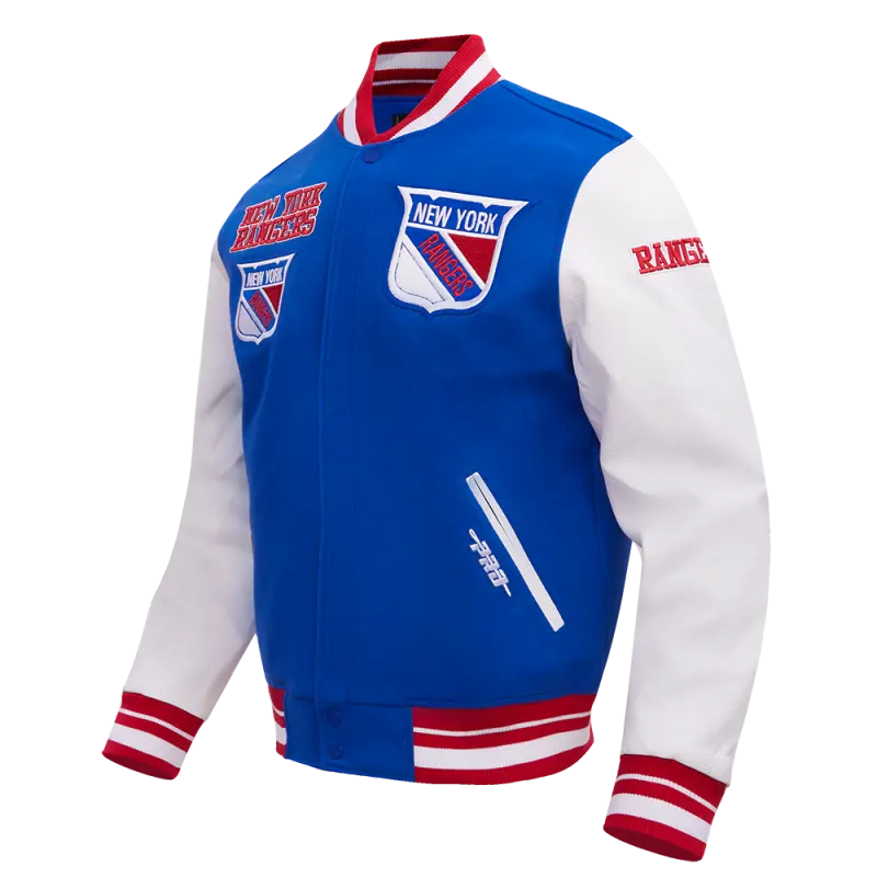 NHL NEW YORK RANGERS RETRO CLASSIC MEN’S RIB WOOL VARSITY JAC (ROYAL BLUE\/RED)