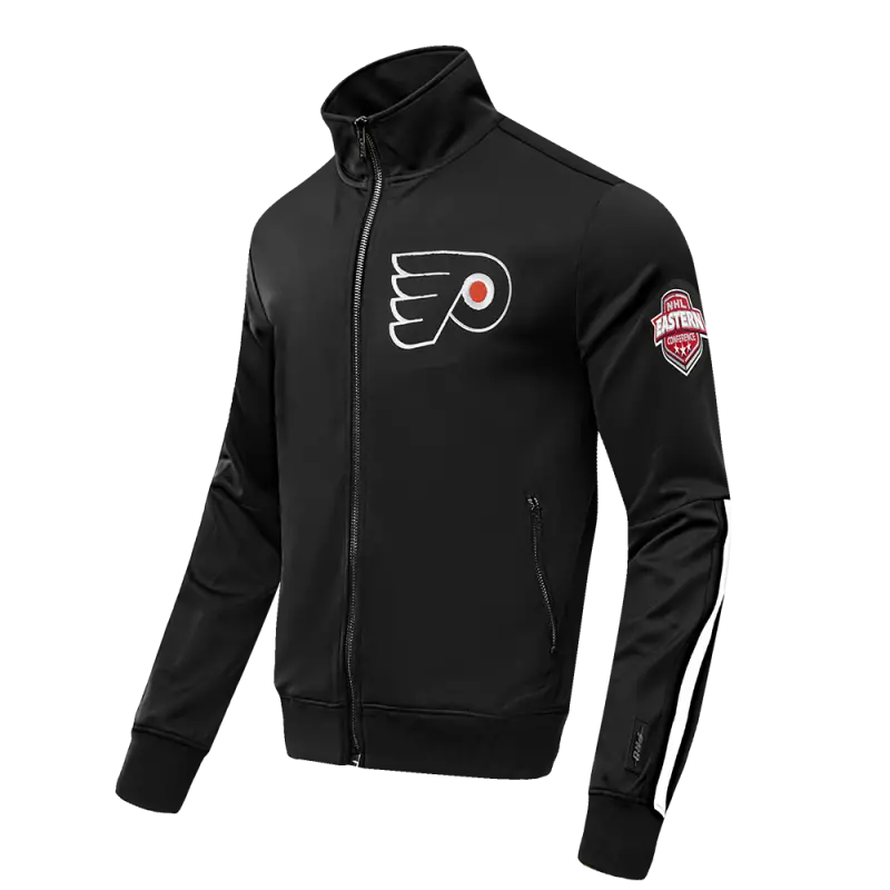 NHL PHILADELPHIA FLYERS CLASSIC CHENILLE MEN’S DOUBLE KNIT TRACK JACKET (BLACK)