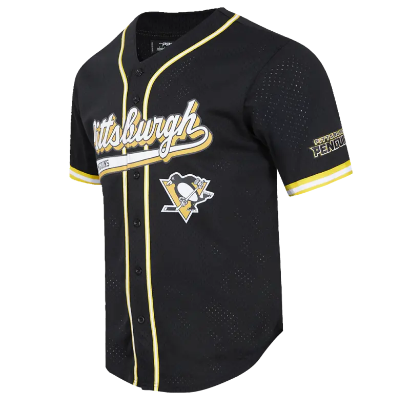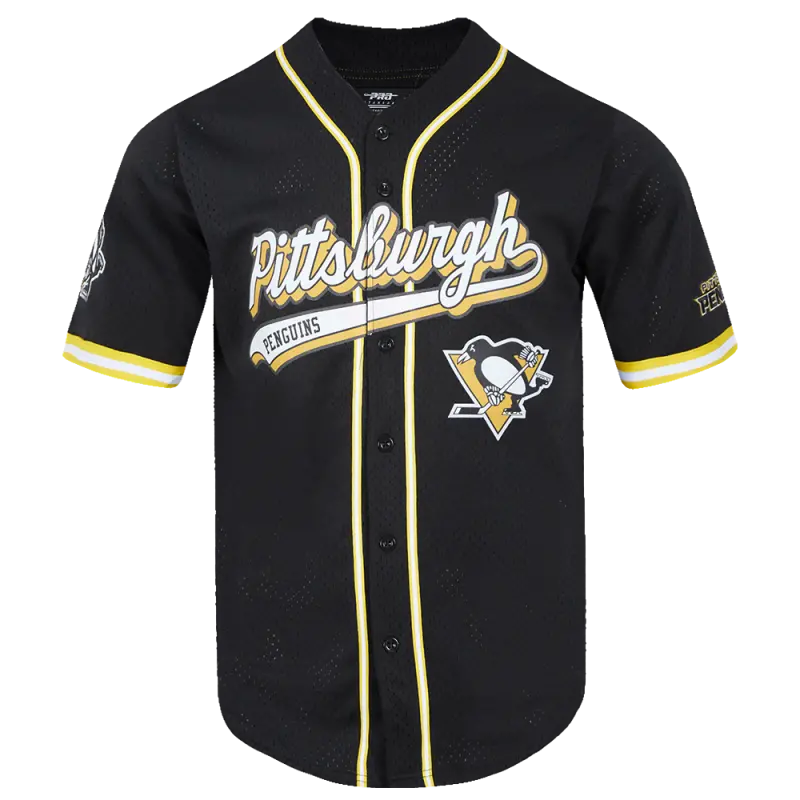 NHL PITTSBURGH PENGUINS CLASSIC MEN’S MESH BUTTON DOWN JERSEY (BLACK\/YELLOW)