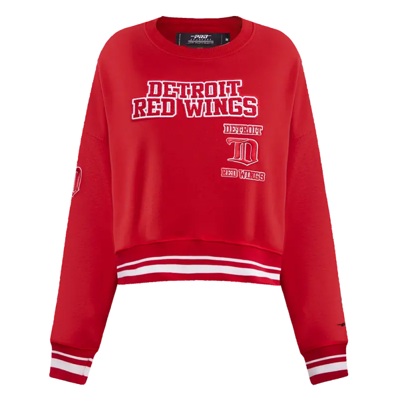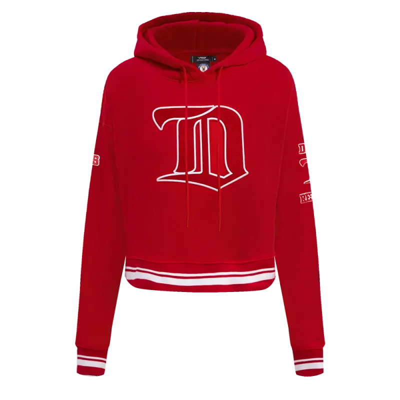NHL DETROIT RED WINGS RETRO CLASSIC WOMEN’S RIB CROPPED PULLOVER HOODIE (RED)