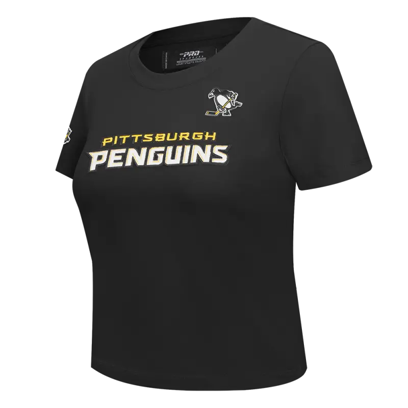 NHL PITTSBURGH PENGUINS SCRIPT TAIL WOMEN’S SINGLE JERSEY BOXY TEE (BLACK)