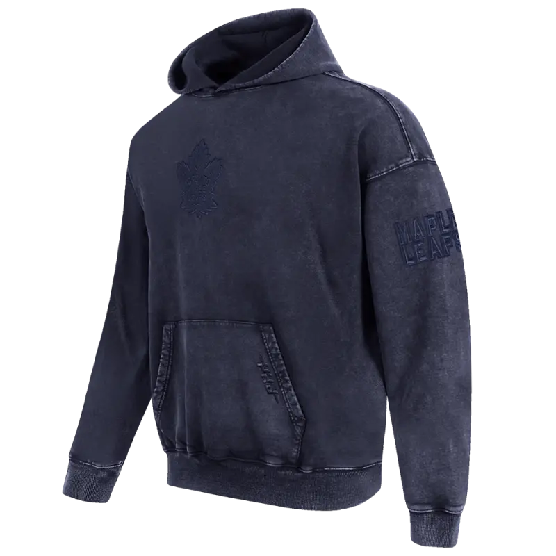 NHL TORONTO MAPLE LEAFS WASHED VANGUARD MEN’S ENZYME WASH DROP SHOULDER FT PO HOODIE (WASHED BLACK)