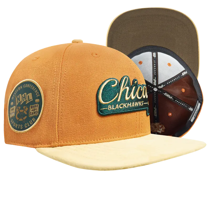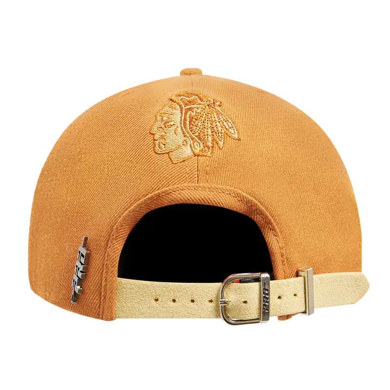 NHL CHICAGO BLACKHAWKS BUTTER SUEDE SIDE PATCH STRAPBACK HAT (BURNT ORANGE\/SUEDE)