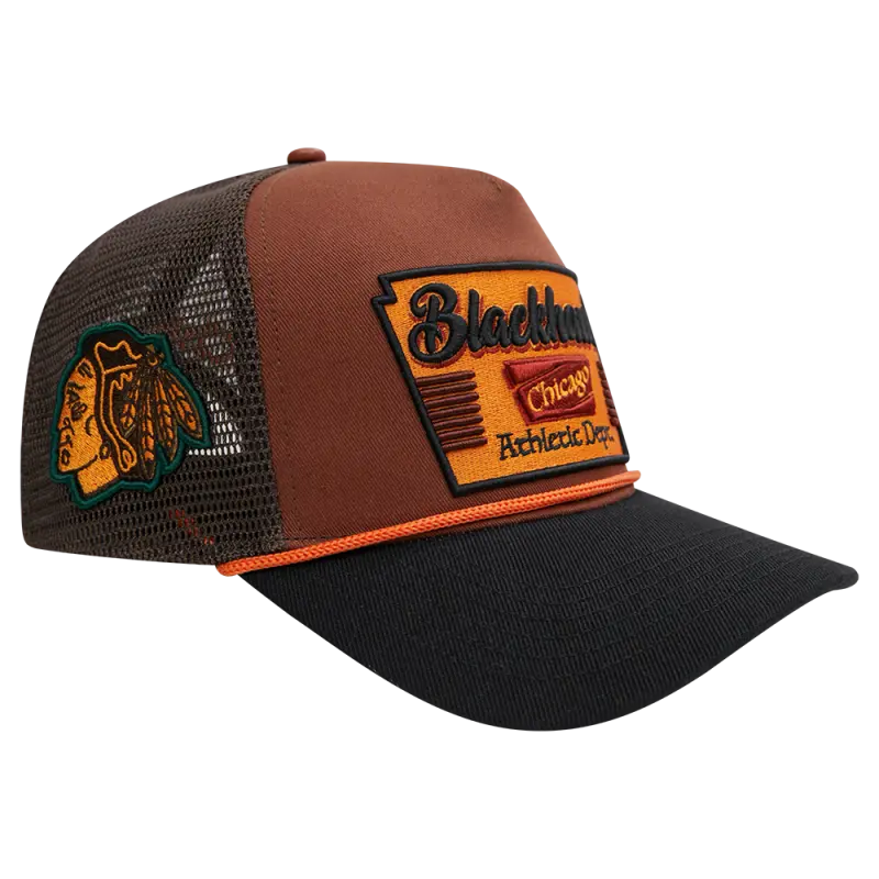 NHL CHICAGO BLACKHAWKS INSIGNIA WOOL 2 TONE PINCH FRONT TRUCKER (RUST\/BLACK)