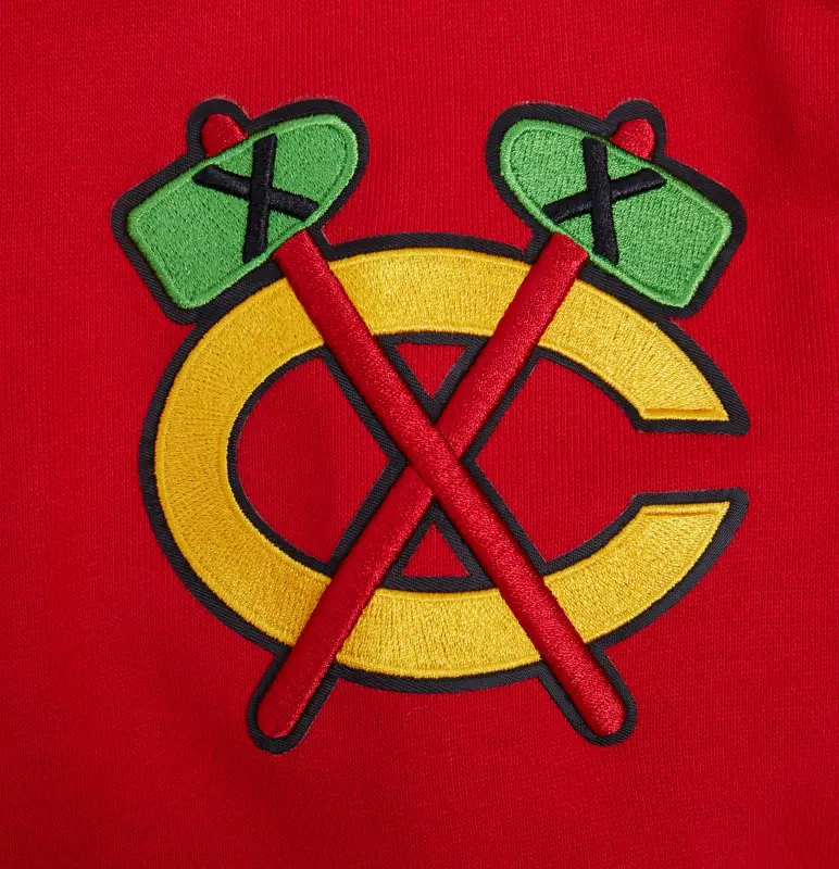 Home / Shop / Chicago Blackhawks / NHL CHICAGO BLACKHAWKS SCRIPT TAIL MEN’S RIB FLEECE PULLOVER HOODIE (RED\/BLACK)