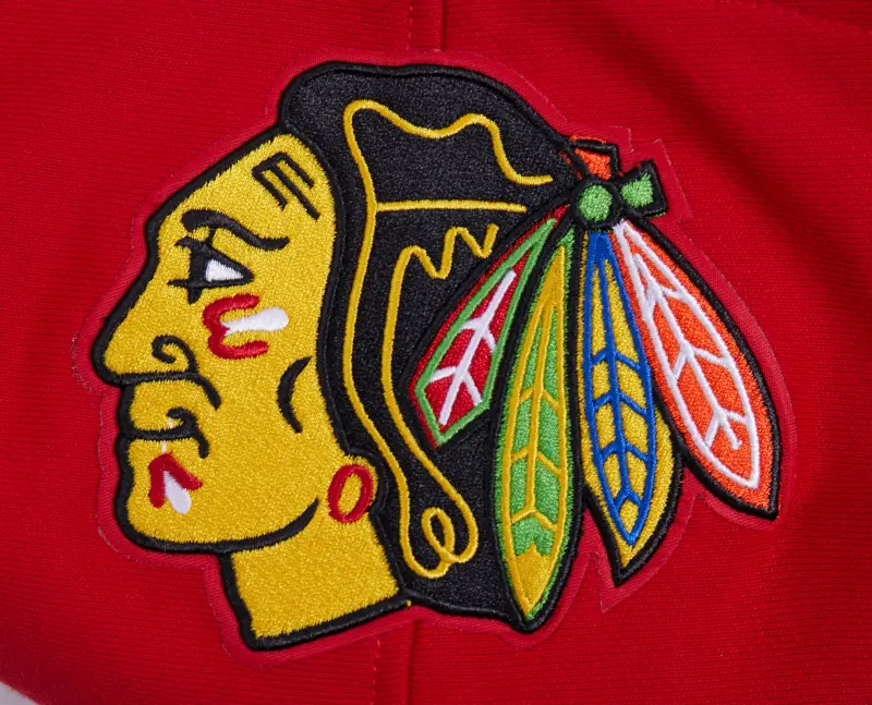 NHL CHICAGO BLACKHAWKS SCRIPT TAIL MEN’S RIB FLEECE PULLOVER HOODIE (RED\/BLACK)