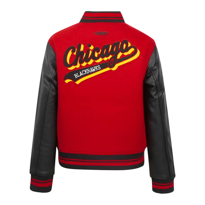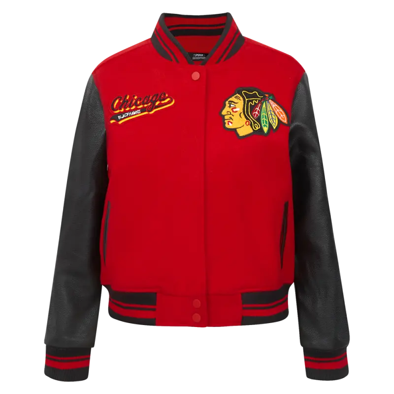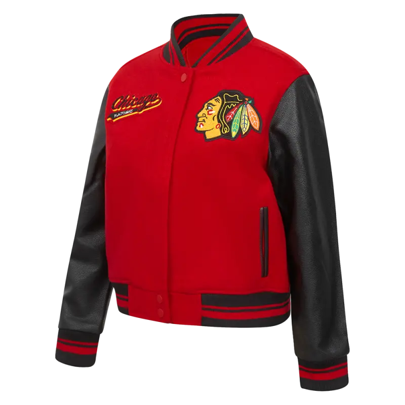 Home / Shop / Chicago Blackhawks / NHL CHICAGO BLACKHAWKS SCRIPT TAIL WOMEN’S WOOL VARSITY JACKET (RED\/BLACK)