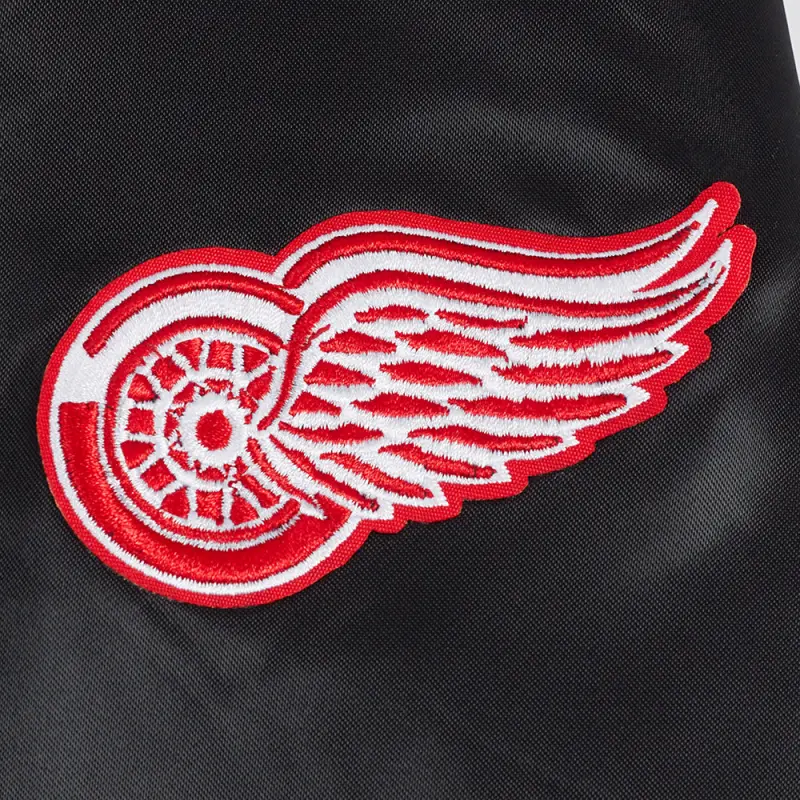 NHL DETROIT RED WINGS SCRIPT TAIL WOMEN’S SATIN JACKET (BLACK\/RED\/BLACK)
