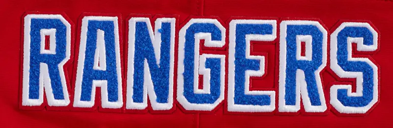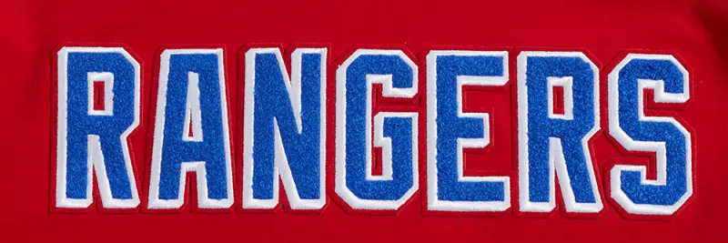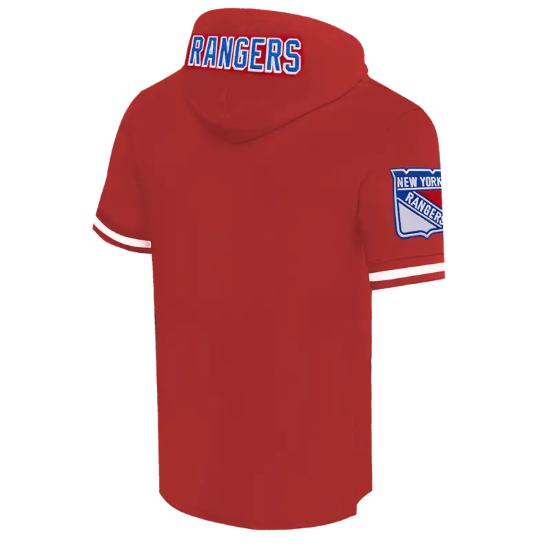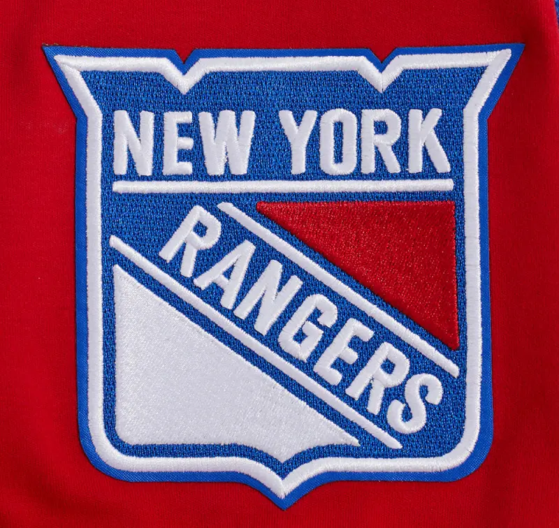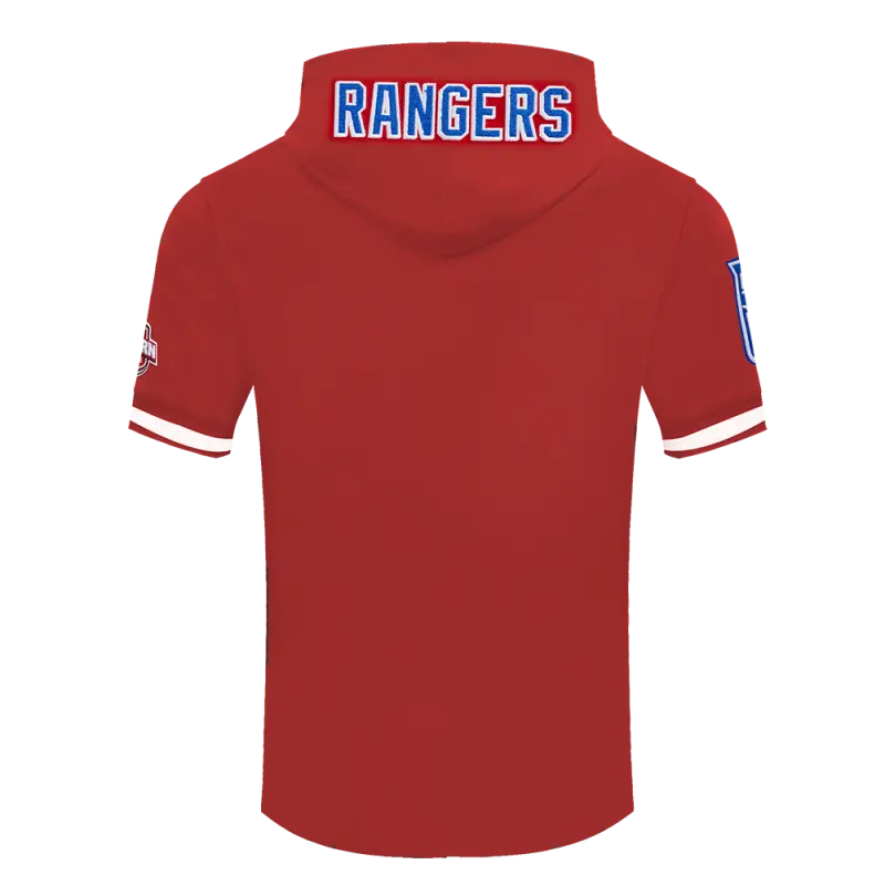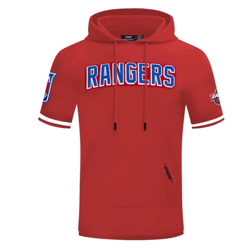 NHL NEW YORK RANGERS CLASSIC CHENILLE MEN’S DOUBLE KNIT SHORT SLEEVE PULLOVER HOODIE (RED)