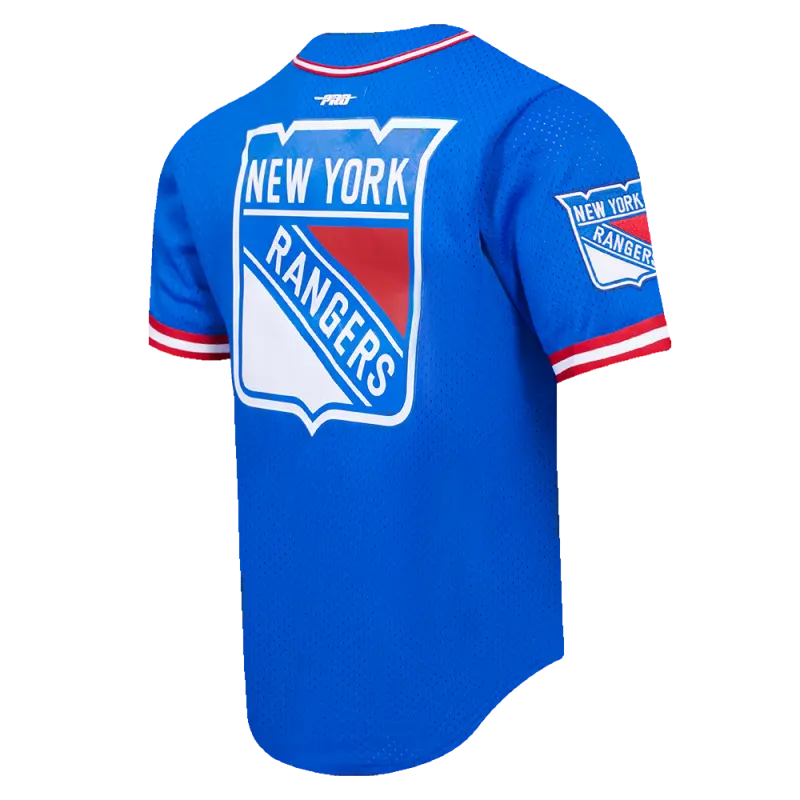NHL NEW YORK RANGERS CLASSIC MEN’S MESH BUTTON DOWN JERSEY (ROYAL BLUE\/RED)