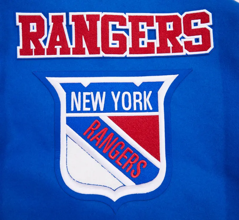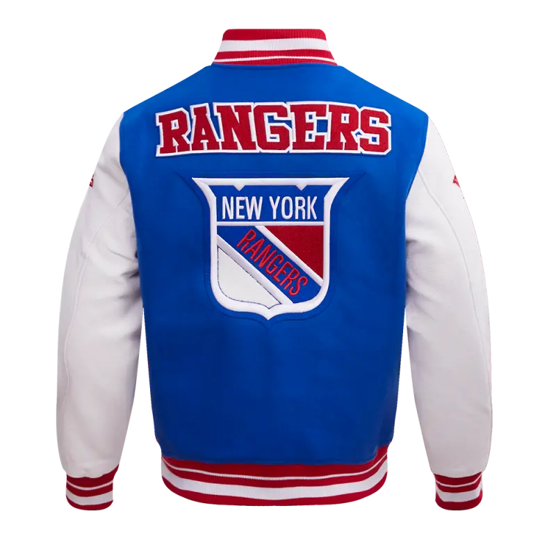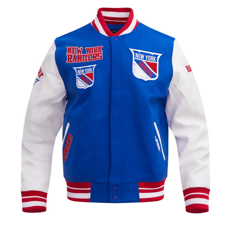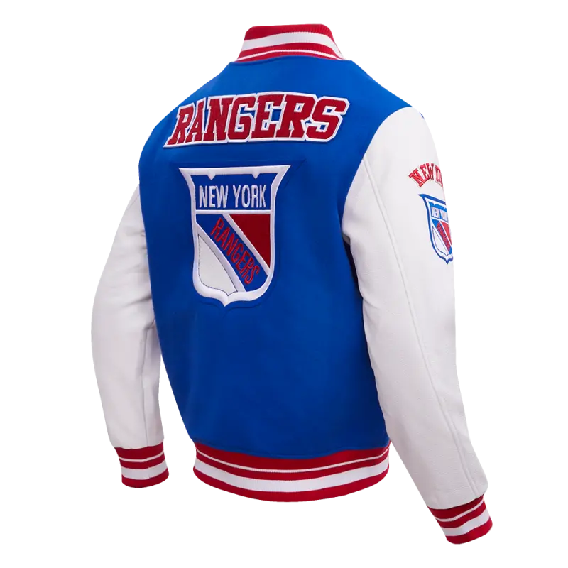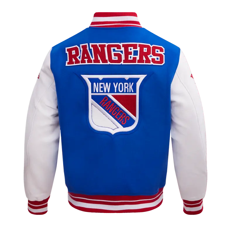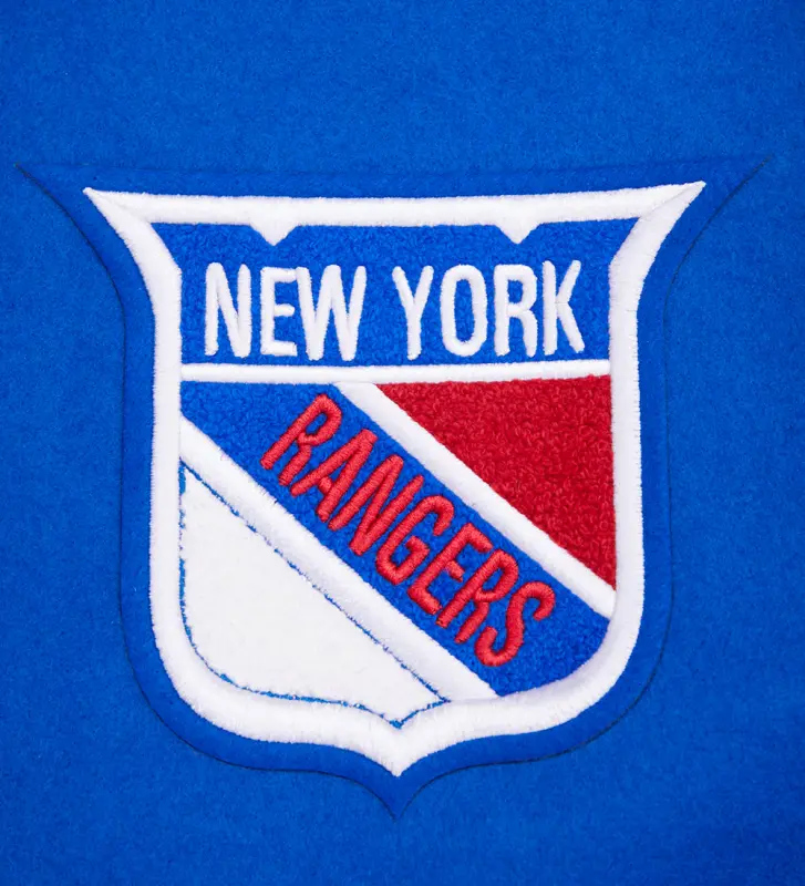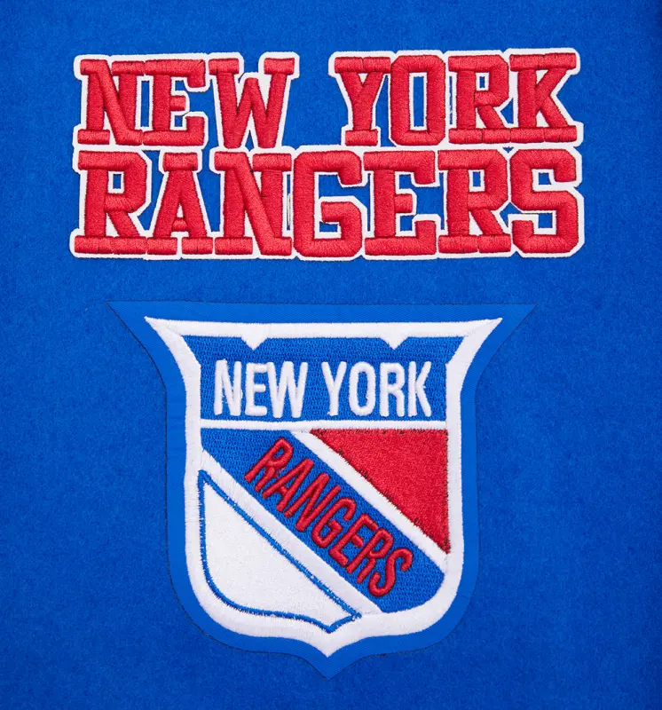 NHL NEW YORK RANGERS RETRO CLASSIC MEN’S RIB WOOL VARSITY JAC (ROYAL BLUE\/RED)