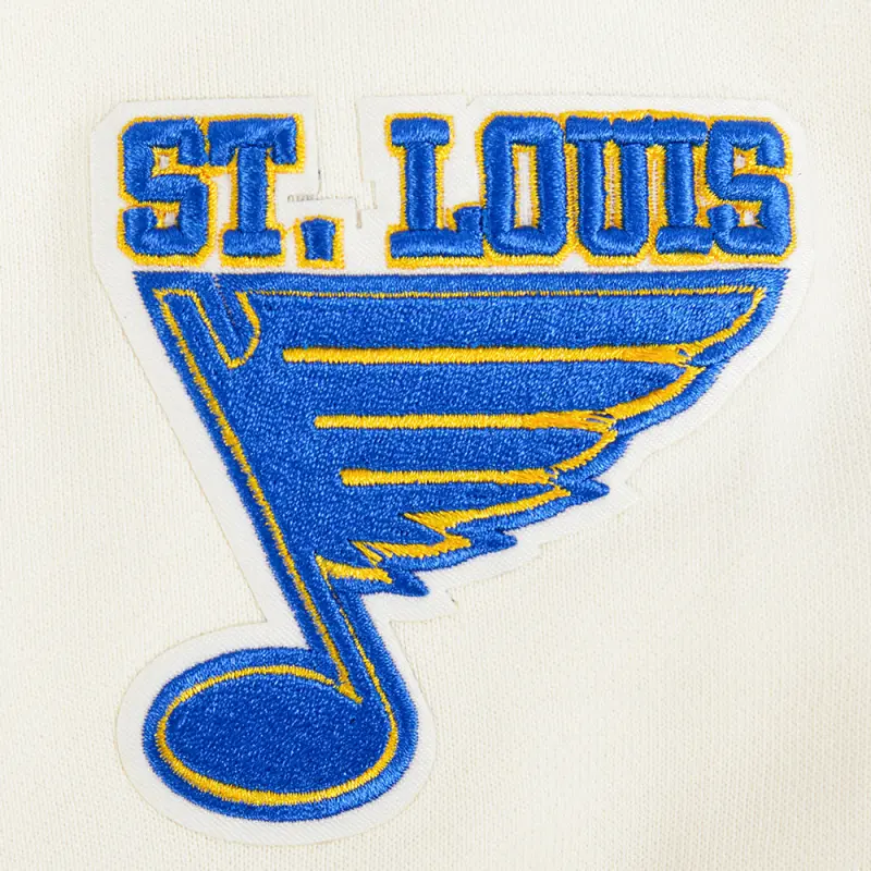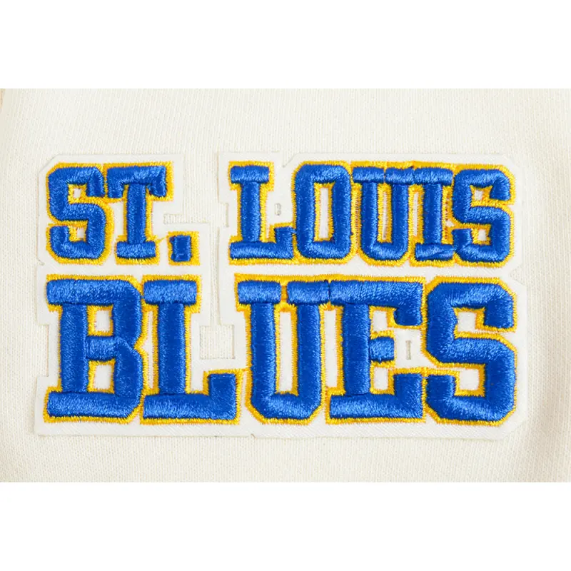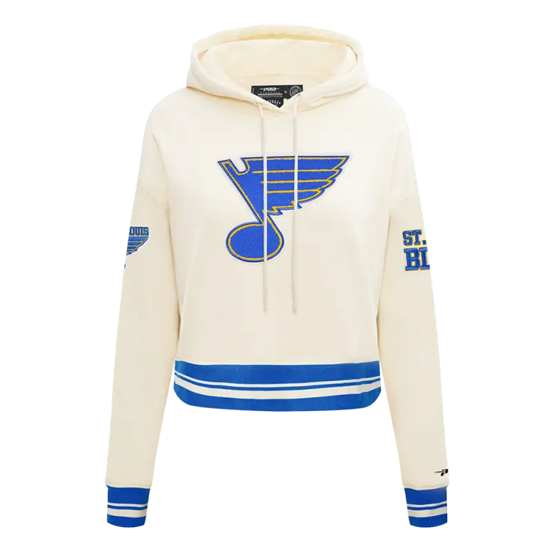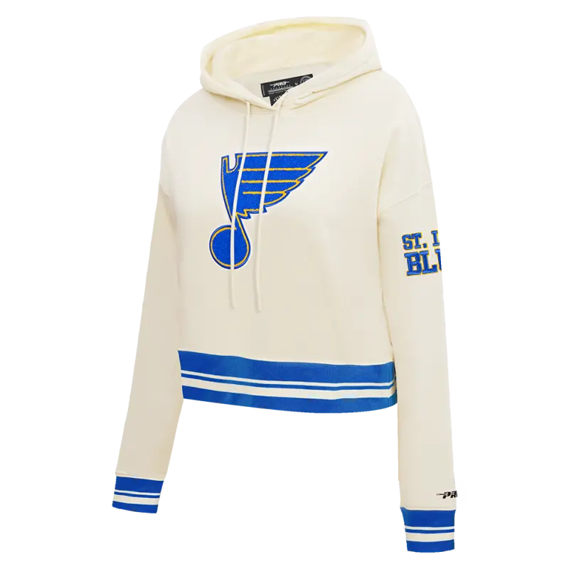 The Pro Standard Premium NHL St. Louis Blues Retro Classic WoMen’s Rib Cropped PO Hoodie (Eggshell/Royal Blue)